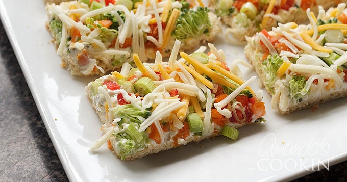 This appetizer veggie pizza uses crescent dough, flavored cream cheese, fresh vegetables and shredded cheese to make an absolutely delicious finger food!