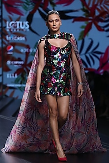 Design | Buy Multi Colored Embellished Dress With Printed Cape Indian Fashion Designer Mahima Mahajan Latest Collections Available at perniaspopupshop.com