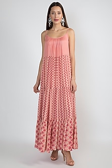 Dress Design | Buy Pink Printed Tiered Dress Indian Fashion Designer Ease Latest Collections Available at perniaspopupshop.com