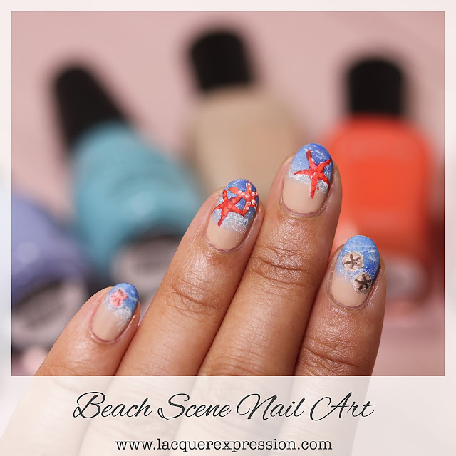 Lacquerexpression | Free-handed summer beach nail art using nail polish