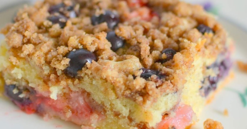 Blueberry Coffee Cake | This delicious made from scratch berry coffee cake is packed full of berries and is great for dessert, brunch or breakfast! Also delicious with blackberries, raspberries, cherries or cranberries! Try this cake and it will be a new family favorite!