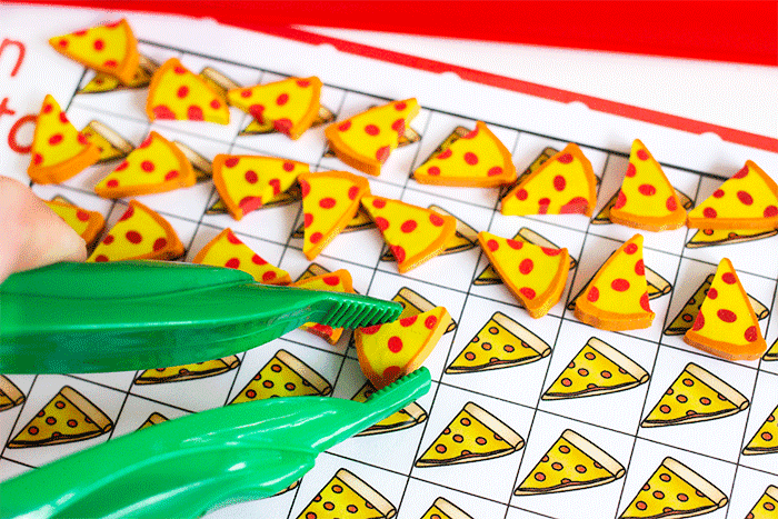 #Skills | A free printable counting grid set with a fun pizza theme. These will help strengthen simple math skills as well as fine motor skills for children.
