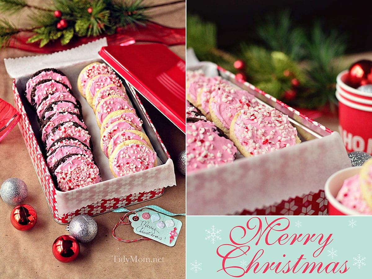 #Peppermint | Peppermint Cake Mix Cookies with buttercream are Santa approved. Easy, soft, and fluffy cake mix cookies with peppermint buttercream are perfect for any holiday cookie platter.