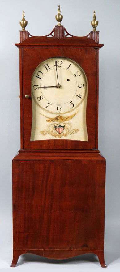 #Massachusetts | with original painted American eagle and shield motif kidney-shaped dial,brass finials, fret and feet appear to be or… on Jan 29, 2012